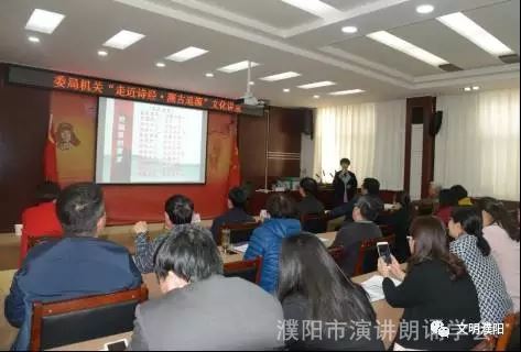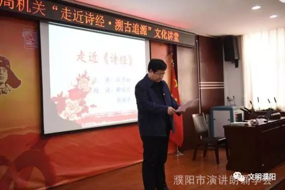 【据濮阳市纪检委创建办报道】4月11日下午,市纪委监察局“走近诗经·溯古追源”文化讲堂开讲。濮阳诗经研究会名誉会长、 市演讲朗诵学会会长、市创建诗词之市专家组组长许清林先生担任讲堂主讲。濮阳诗经研究会副会长、市演讲朗诵学会副会长解瑞民和濮阳诗经研究会副秘书长、市演讲朗诵学会艺术指导张丽华担任助讲。市纪委副书记史浩川、市预防腐败局局长傅家云参加活动,市纪委常委朱宗卿主持文化讲堂。
