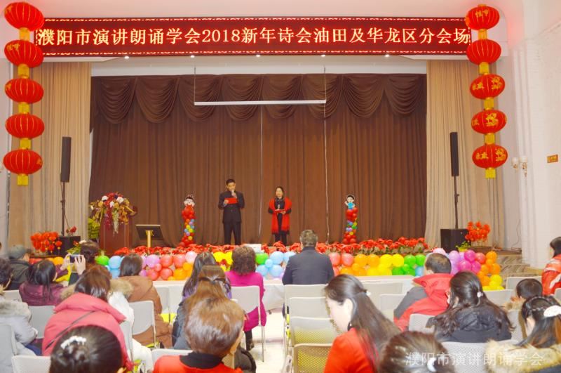 2017年12月24日上午,濮阳市演讲朗诵学会2018新年诗会油田及华龙区分会场,在“亿童幼教服务中心”如期拉开序幕。这次活动近六十人参与了活动,大家都怀揣着对朗诵的一份热爱与虔诚,欢聚一堂。濮阳市演讲朗诵学会张峰会长和“亿童幼教服务中心”老总任霞歌女士出席了诗会。